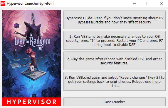 - Run “VBS.cmd” in the game folder – you might want to download fresh version here: https://fitgirl.nsus.dev/hypervisor-guide/